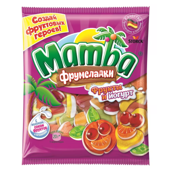 Мамба Фрумеладки- вкусные жевательные мармеладки c натуральным фруктовым соком и витаминами! Насладись их отличным вкусом и получи заряд веселья! Ассорти фруктовых вкусов с нежным йогуртовым слоем, фр...