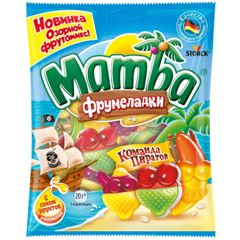 Мармелад жевательный MAMBA Фрумеладки Команда пиратов – это вкусные жевательные мармеладки c фруктовым соком и витаминами.