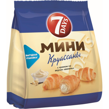 Круассан 7Days ягодное ассорти 65г с джемом из натуральных ягод собственного производства. Насладитесь сочным вкусом ароматных ягод. Круассан 7 Days -это питательная порция выпечки, наполненная кремовой или джемовой начинкой. Он удобно упакован и готов к употреблению. Великолепный дуэт воздушного слоеного теста и нежной начинки подарит вам энергию на весь день и сделает его восхитительным. Утолите чувство голода и получите настоящее удовольствие от перекуса: круассан 7 Days сделает ваш день восхитительным.