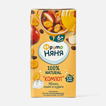 ФрутоНяня 0,2л Напиток Яблоко, Курага и экстракт Изюма сокосодержащий "компот" для питания детей раннего возраста.
