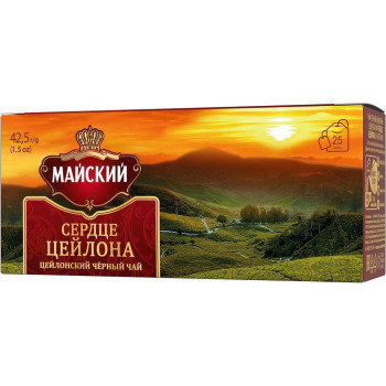 Чай черный МАЙСКИЙ Сердце цейлона – крепкий купаж лучших сортов чая из самого сердца Цейлона. Благодаря длительному процессу ферментации чайные листья сохраняют насыщенный аромат с нотами печеного ябл...