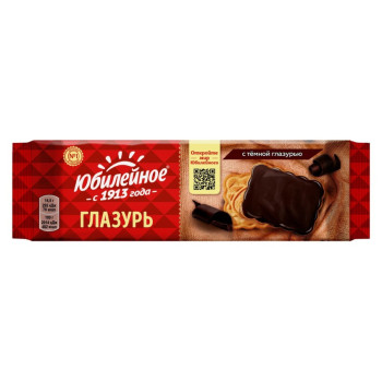 Печенье Юбилейное молочное в молочной глазури - любимое лакомство и перекус для детей и взрослых. Сахарное печенье обладает выраженным молочным ароматом, на поверхности расположен неоднородный рисунок...