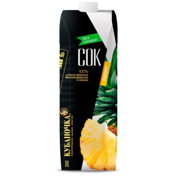 Сок Ананасовый без сахара, восстановленный без консервантов и красителей класса . Сок "КУБАНОЧКА" Ананасовый произведен из высококачественного сырья. Не содержит сахара, красителей и консервантов.