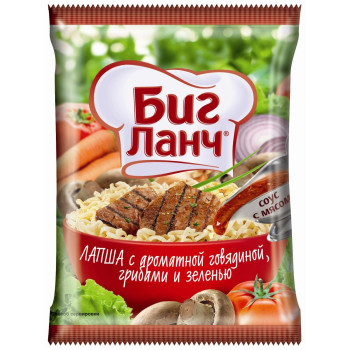 Лапша: пшеничная мука в/с, пальмовое масло, модифицированный крахмал, соль лук сушеный, сушеная ламинария (порошок), клейковина, эмульгатор-загуститель, краситель "бета-каротин", комплексная пищевая добавка "Премикс". Приправа из сушеных овощей: соевый текстурат, лук, водоросли сушеные (хлопья). Бульон-приправа: соль, усилитель вкуса (глутамат натрия), ароматизатор идентичный натуральному, порошок соевого соуса, глюкоза, перец красный, перец черный, чесночный порошок